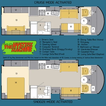 After being discharged from the military, Fred Jones began using his know-how and inheritance to retrofit an old motorhome with top-of-line parts, a luxury interior, an armored exterior, and a variety of parts from the Army-Navy surplus. His plan was to use this as his mobile base on his quest to find his real parents, but before he had finished it, Daphne stumbled upon the vehicle and offered to pay Fred to finish it and sell it to her. Fred agreed and by the time he completed it, Fred had taken a liking to Daphne and offered to teach her and her team how to drive it.[1]